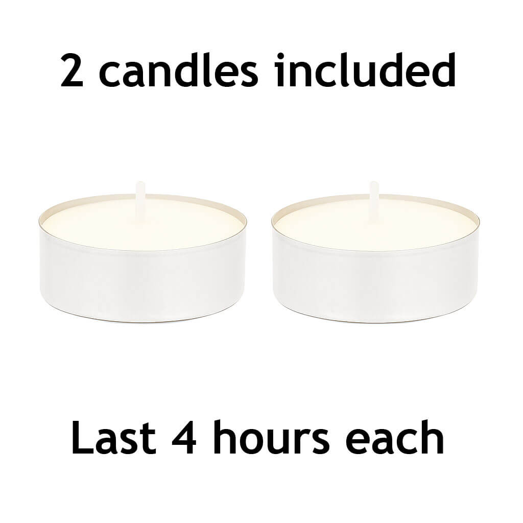 Keep your tea or food warm in style with the CAIRO Food and Tea Warmer by Grosche. With its ornate bronze finish and durable steel design, this warmer is the perfect companion for any glass, ceramic, or porcelain teapot. It includes two tealight candles, each offering up to 4 hours of burn time, allowing your tea to stay warm for an additional 2–4 hours. If you'd like extra candles, you can also purchase our 4-pack of tealight refills. Perfect for tea lovers, fondue nights, or cozy gatherings.